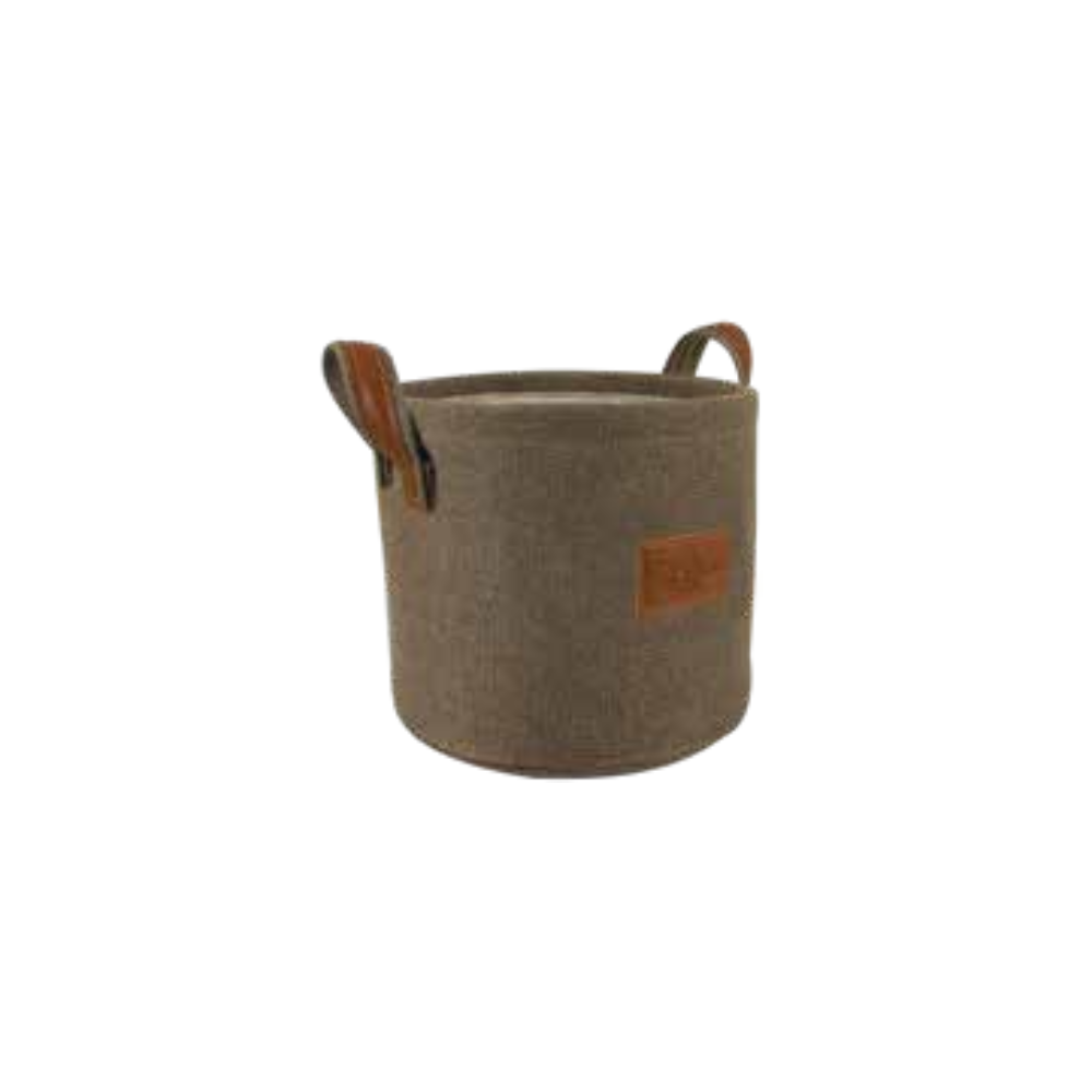 33 CM DIAMETER * 32 CM HEIGHT MELANGE POLYESTER BROWN – LEATHER COVERED HANDLE